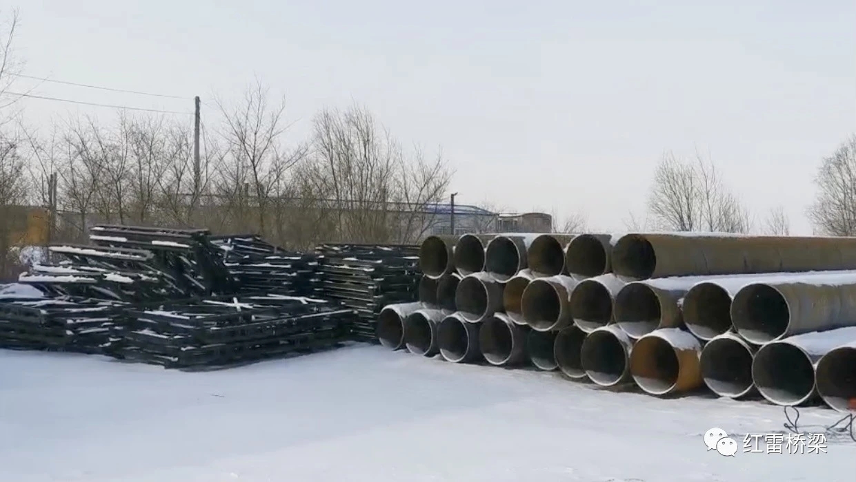 目前,施工地點齊齊哈爾市處于冰凍期,冰層厚度約80cm-110cm。在凍脹力的作用下,會對鋼管樁產(chǎn)生脆性破壞,嚴重時會將鋼管樁脹裂,導致鋼管樁承載能力及臨時支架結構穩(wěn)定性下降,產(chǎn)生安全風險。項目部和我司施工部門商討決定,采用相對應的防凍裂措施,以保證鋼管樁壁完好的力學性能。