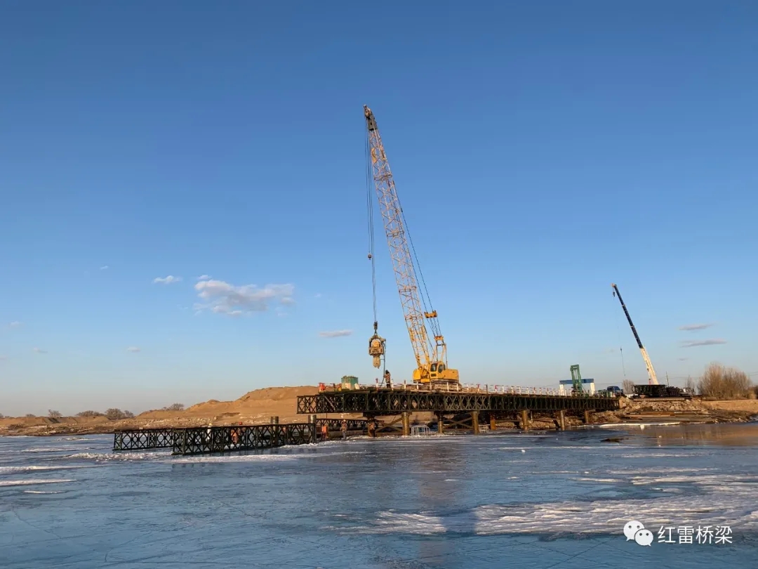 近日,由華電能源股份有限公司投資,富拉爾基發(fā)電廠承建的向齊市中心城區(qū)供熱熱網(wǎng)項目正在緊鑼密鼓建設中。供熱管廊橋跨越嫩江,橋梁全長710米,上部結構采用下承式鋼桁梁;下部結構形式采用矩形實體式鋼筋混凝土橋墩。紅雷橋梁承擔此項目部分施工建設,為嫩江管廊工程提供便橋施工服務。