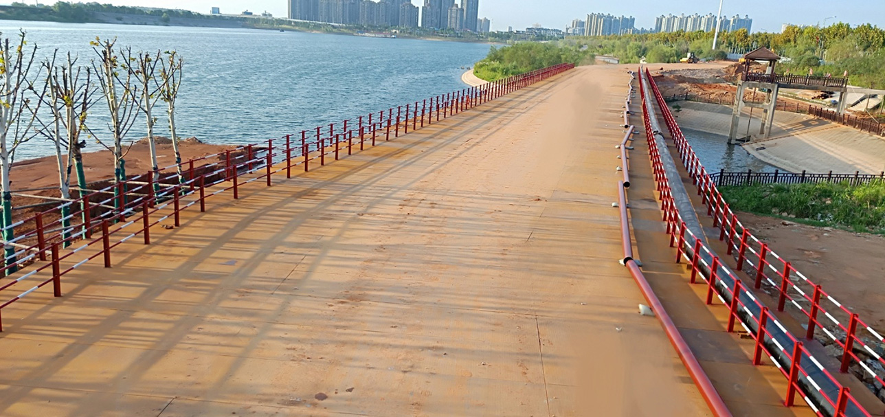 做為大型水體工程的保通橋梁,不僅需要為電排站擴(kuò)建工程提供運(yùn)輸通道,也承擔(dān)著整個(gè)岳陽市區(qū)交通的分流任務(wù)。南津港大堤做為南湖的重要交通通道,每天車流量達(dá)到4萬余次,對(duì)保通橋梁的承載及抗疲勞系數(shù)都具有相當(dāng)嚴(yán)格的要求。