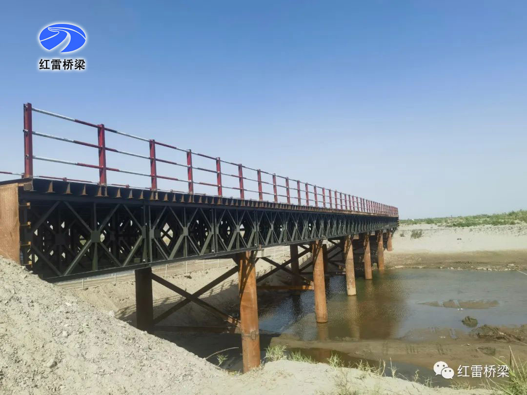 紅雷橋梁合作新疆北新路橋,為第三師圖木舒克市-第十四師昆玉市公路第三師段、第三師圖木舒克市-第十四師昆玉市公路第三師段第四標段各搭建鋼便橋一座。