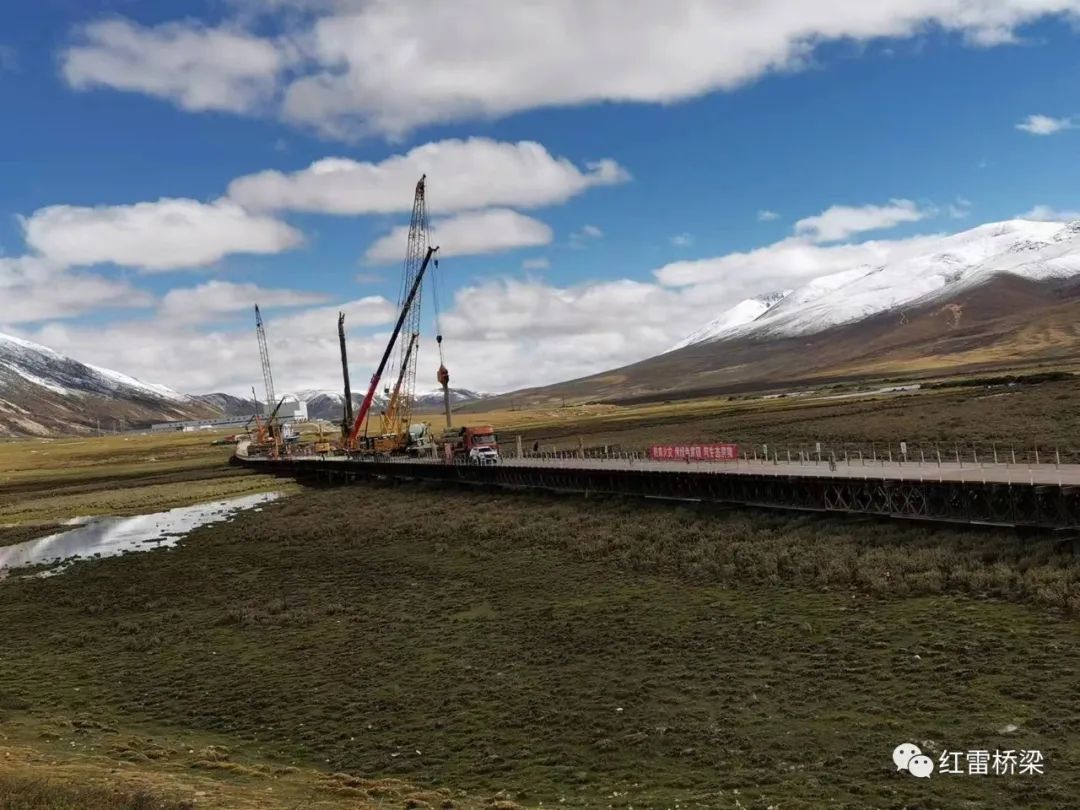 無(wú)量河濕地公園位于理塘以西,是中國(guó)美的六大草原之一毛埡大草原的重要組成部分。公園面積廣闊,水草資源豐富,風(fēng)景美麗迷人。但也由于地形多為沼澤湖泊,使得施工、運(yùn)輸成為一個(gè)難題,紅雷橋梁搭設(shè)主棧橋長(zhǎng)度2.3公里,61個(gè)支棧橋及鉆孔平臺(tái),解決了施工、材料運(yùn)輸及通行等問(wèn)題,為川藏鐵路施工提供一份重要力量。